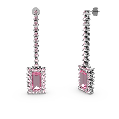 Pembe kuvars 14 ayar beyaz altın küpe