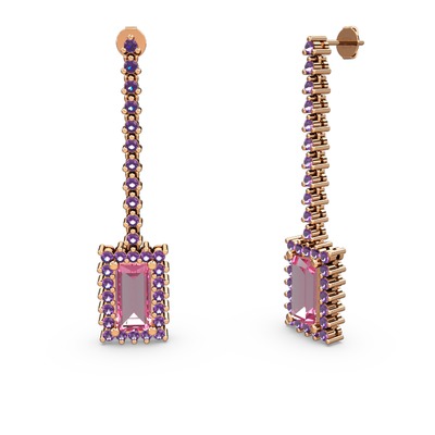 Pembe kuvars ve ametist 925 ayar rose altın kaplama gümüş küpe