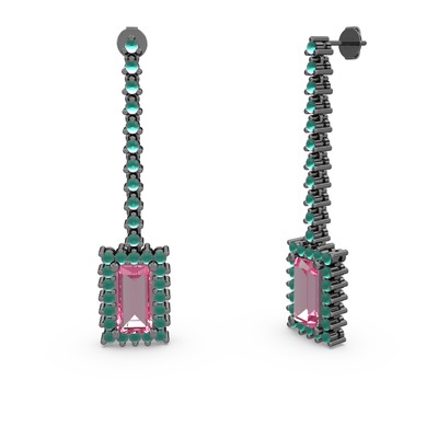 Pembe kuvars ve kök zümrüt 925 ayar siyah rodyum kaplama gümüş küpe