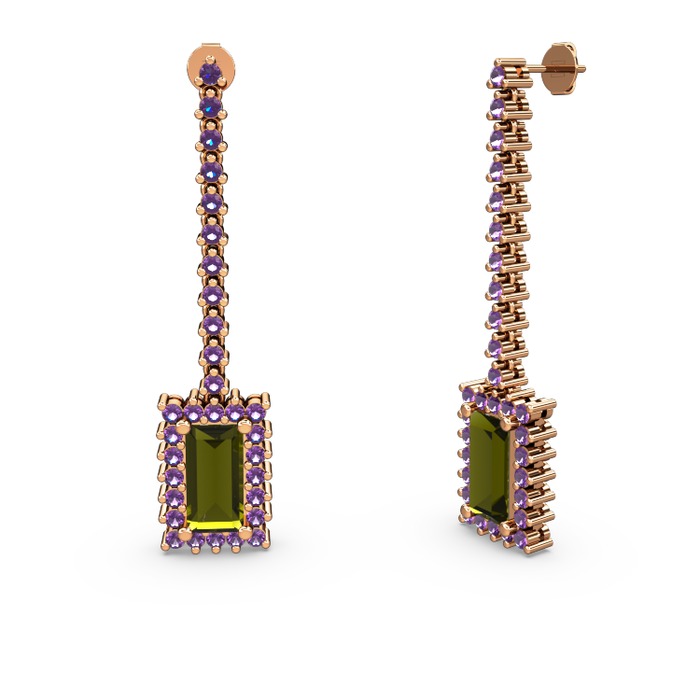 Peridot ve ametist 925 ayar rose altın kaplama gümüş küpe