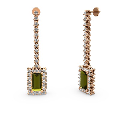 Peridot ve beyaz zirkon 925 ayar rose altın kaplama gümüş küpe