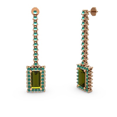 Peridot ve kök zümrüt 18 ayar rose altın küpe