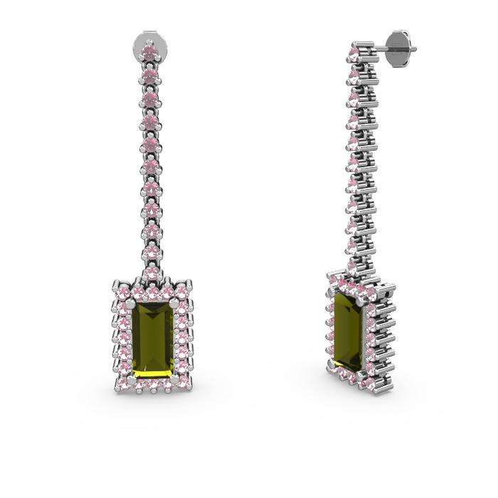 Peridot ve pembe kuvars 8 ayar beyaz altın küpe