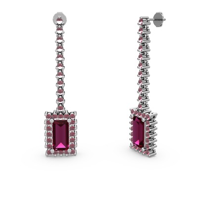 Rodolit garnet ve kök yakut 8 ayar beyaz altın küpe