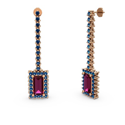 Rodolit garnet ve lab safir 14 ayar rose altın küpe
