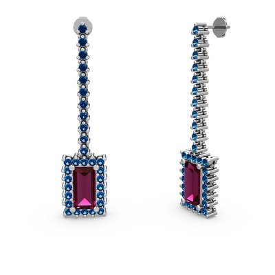 Rodolit garnet ve lab safir 8 ayar beyaz altın küpe