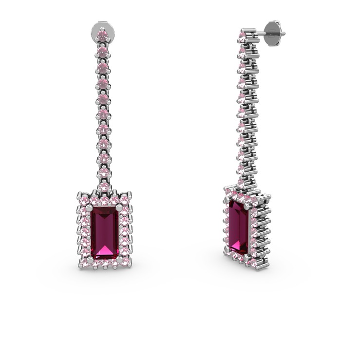 Rodolit garnet ve pembe kuvars 8 ayar beyaz altın küpe