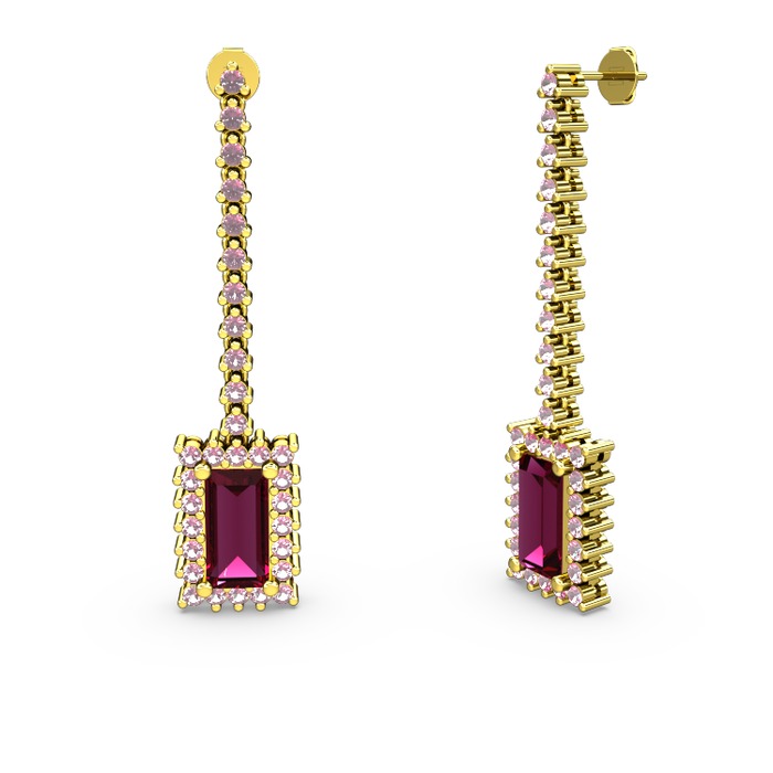 Rodolit garnet ve pembe kuvars 925 ayar altın kaplama gümüş küpe