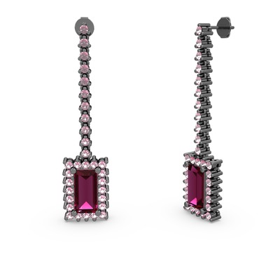 Rodolit garnet ve pembe kuvars 925 ayar siyah rodyum kaplama gümüş küpe