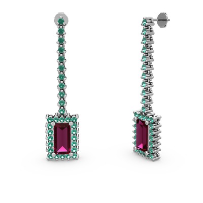 Rodolit garnet ve yeşil kuvars 18 ayar beyaz altın küpe