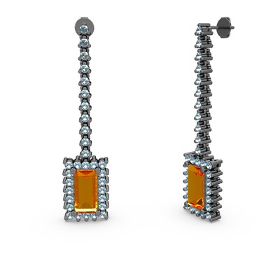 Sitrin ve akuamarin 925 ayar siyah rodyum kaplama gümüş küpe