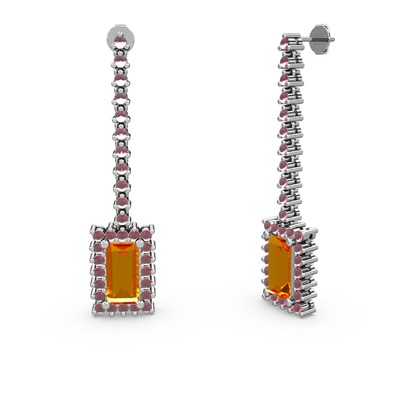 Sitrin ve kök yakut 18 ayar beyaz altın küpe