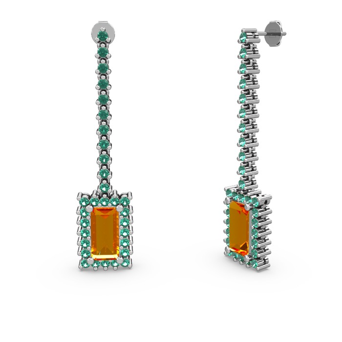 Sitrin ve yeşil kuvars 14 ayar beyaz altın küpe