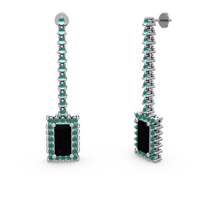 Siyah zirkon ve kök zümrüt 8 ayar beyaz altın küpe