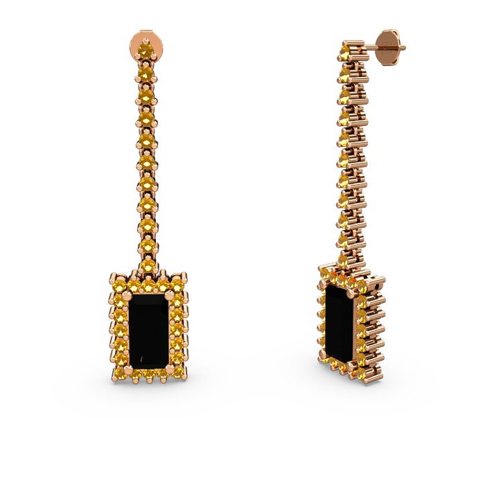 Siyah zirkon ve sitrin 18 ayar rose altın küpe