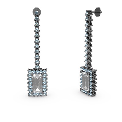 Swarovski ve akuamarin 925 ayar siyah rodyum kaplama gümüş küpe
