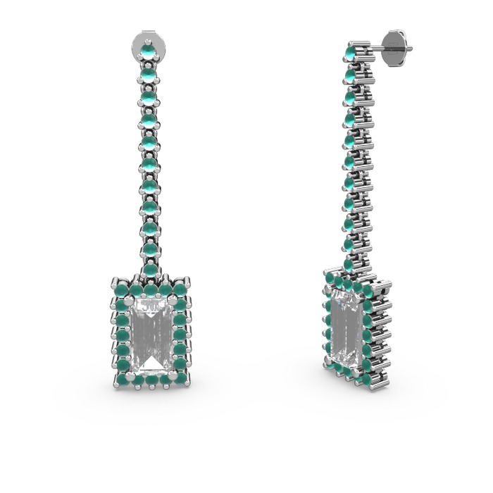 Swarovski ve kök zümrüt 18 ayar beyaz altın küpe