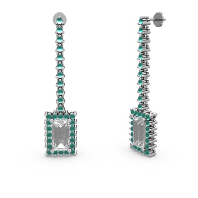Swarovski ve kök zümrüt 8 ayar beyaz altın küpe