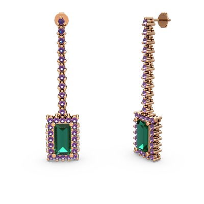 Yeşil kuvars ve ametist 925 ayar rose altın kaplama gümüş küpe