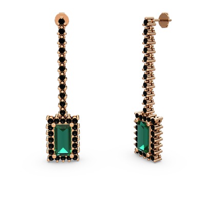 Yeşil kuvars ve siyah zirkon 18 ayar rose altın küpe