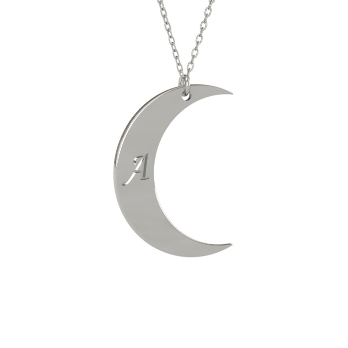Samhain Ay Kolye - 925 ayar gümüş kolye (40 cm beyaz altın rolo zincir)