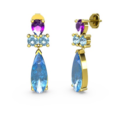 Akuamarin ve ametist 8 ayar altın küpe