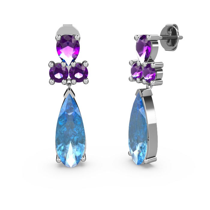 Akuamarin ve ametist 925 ayar gümüş küpe