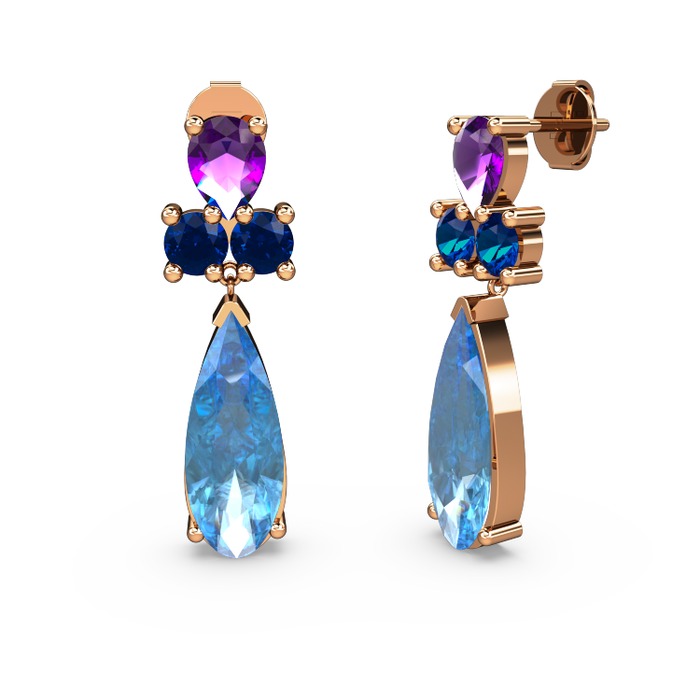 Akuamarin, ametist ve lab safir 8 ayar rose altın küpe