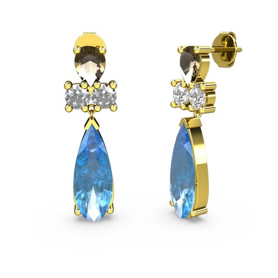 Akuamarin, dumanlı kuvars ve beyaz zirkon 14 ayar altın küpe