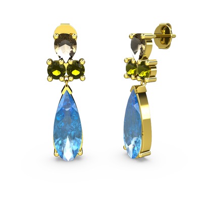 Akuamarin, dumanlı kuvars ve peridot 18 ayar altın küpe