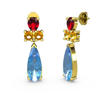 Akuamarin, garnet ve sitrin 925 ayar altın kaplama gümüş küpe