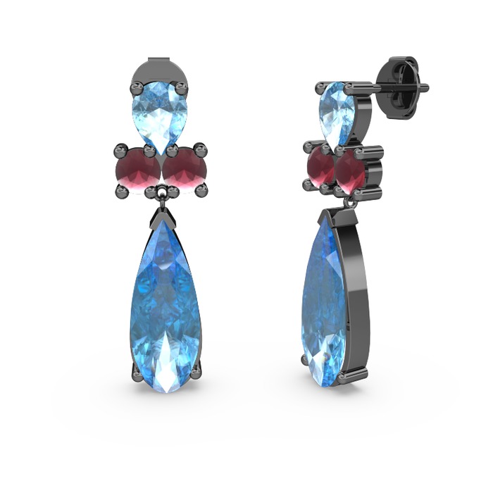 Akuamarin ve kök yakut 925 ayar siyah rodyum kaplama gümüş küpe