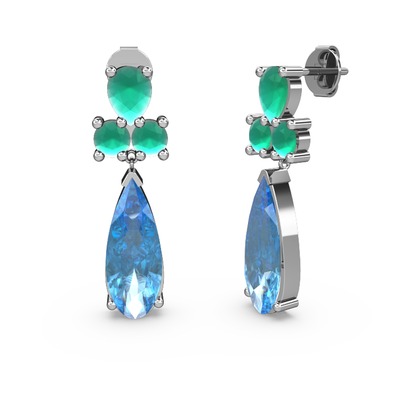 Akuamarin ve kök zümrüt 18 ayar beyaz altın küpe