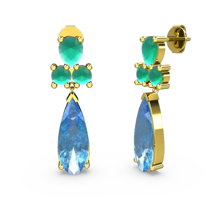 Akuamarin ve kök zümrüt 925 ayar altın kaplama gümüş küpe