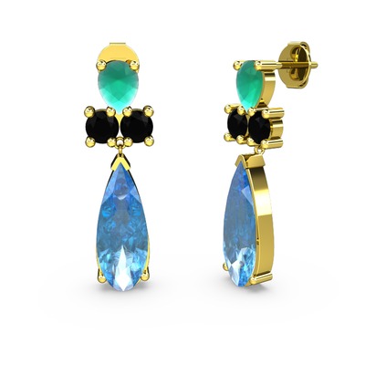 Akuamarin, kök zümrüt ve siyah zirkon 925 ayar altın kaplama gümüş küpe