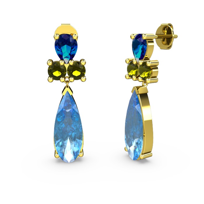 Akuamarin, lab safir ve peridot 14 ayar altın küpe