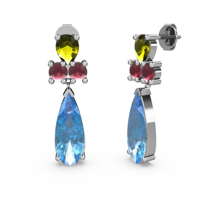 Akuamarin, peridot ve kök yakut 8 ayar beyaz altın küpe