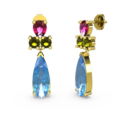 Akuamarin, rodolit garnet ve peridot 8 ayar altın küpe