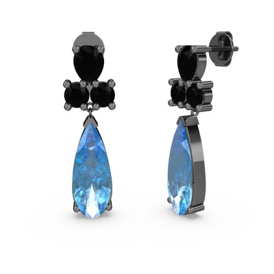 Akuamarin ve siyah zirkon 925 ayar siyah rodyum kaplama gümüş küpe