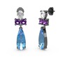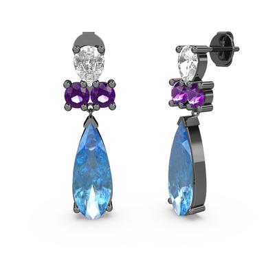 Akuamarin, swarovski ve ametist 925 ayar siyah rodyum kaplama gümüş küpe