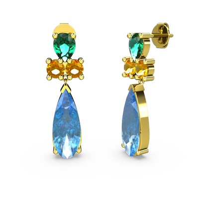 Akuamarin, yeşil kuvars ve sitrin 18 ayar altın küpe