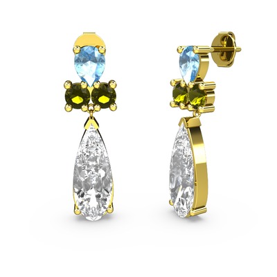 Beyaz zirkon, akuamarin ve peridot 18 ayar altın küpe