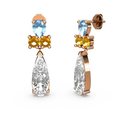 Beyaz zirkon, akuamarin ve sitrin 925 ayar rose altın kaplama gümüş küpe