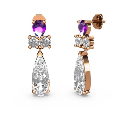 Beyaz zirkon ve ametist 8 ayar rose altın küpe