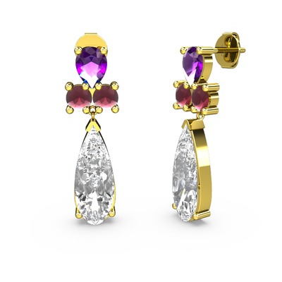 Beyaz zirkon, ametist ve kök yakut 14 ayar altın küpe