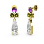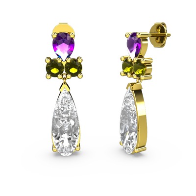 Beyaz zirkon, ametist ve peridot 18 ayar altın küpe
