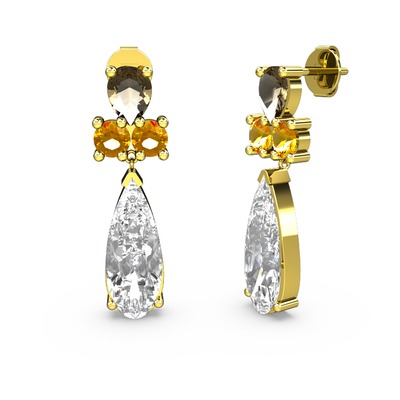 Beyaz zirkon, dumanlı kuvars ve sitrin 8 ayar altın küpe