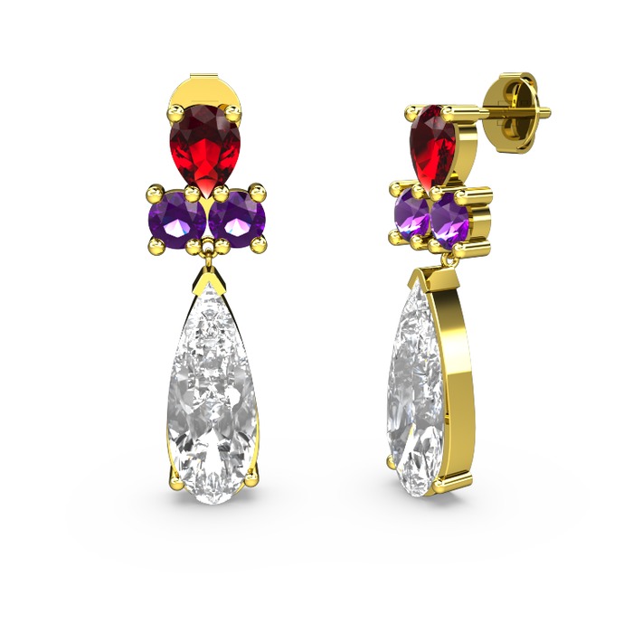 Beyaz zirkon, garnet ve ametist 925 ayar altın kaplama gümüş küpe