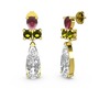 Beyaz zirkon, kök yakut ve peridot 925 ayar altın kaplama gümüş küpe