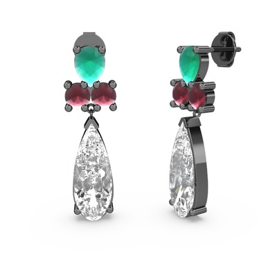 Beyaz zirkon, kök zümrüt ve kök yakut 925 ayar siyah rodyum kaplama gümüş küpe